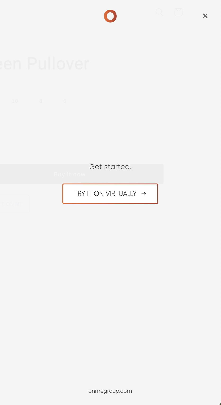 On your product page they'll see a 'See On Me' button. Clicking it opens the try-on flow: login (or create an account) with On Me Group, click 'Try it on', and receive a generated image showing the garment on them. The flow is designed to be simple and fast.